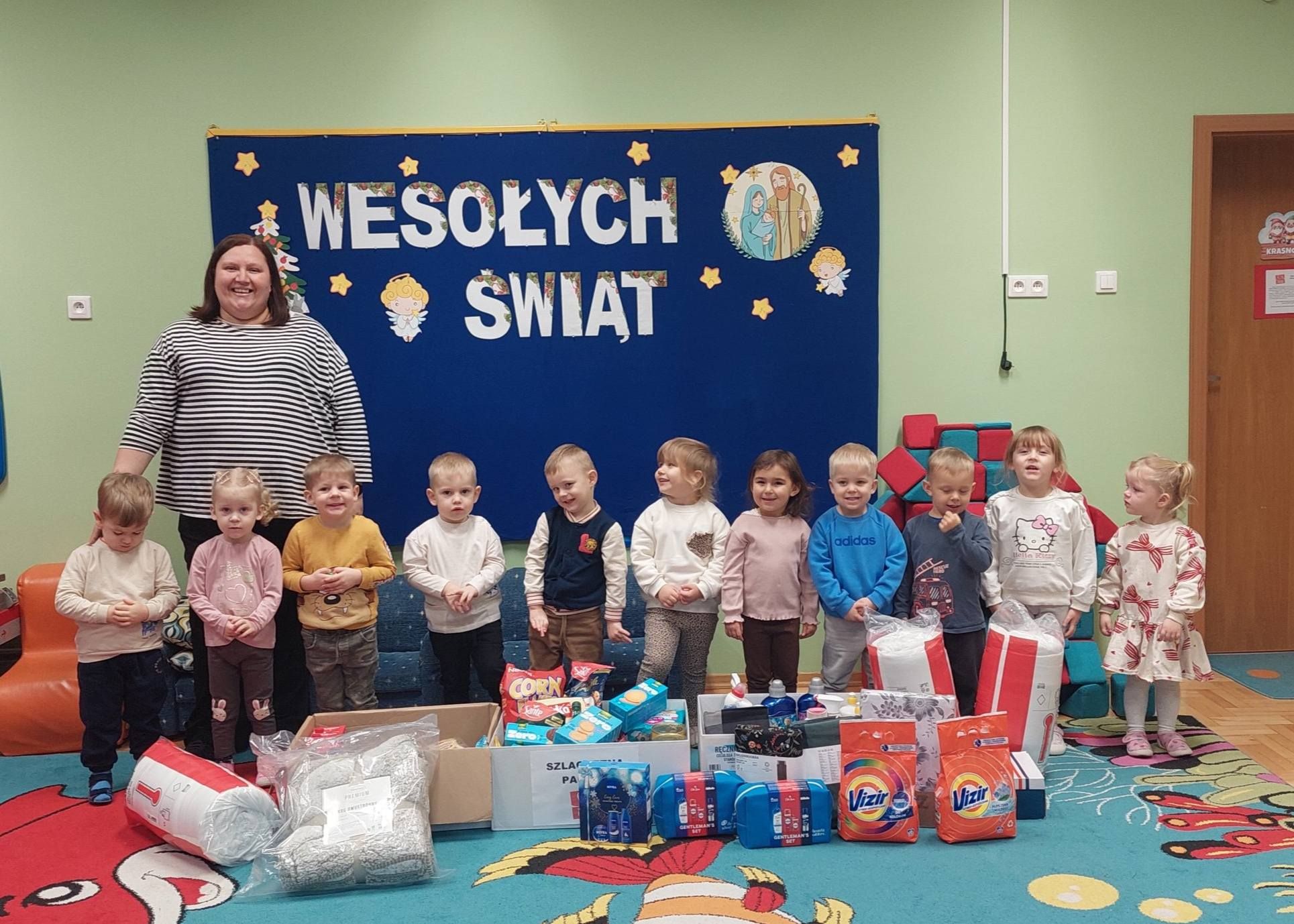 Serdecznie dziękujemy wszystkim darczyńcom za pomoc i okazane serce. Poniżej przedstawiamy zdjęcia poszczególnych grup i darów zebranych przez nie. Możemy być dumni z Rodziców naszych przedszkolaków i pracowników przedszkola za tak liczne dary, które spowodują, że nadchodzące Święta Bożego Narodzenia upłyną im w dostatku, spokoju i radości