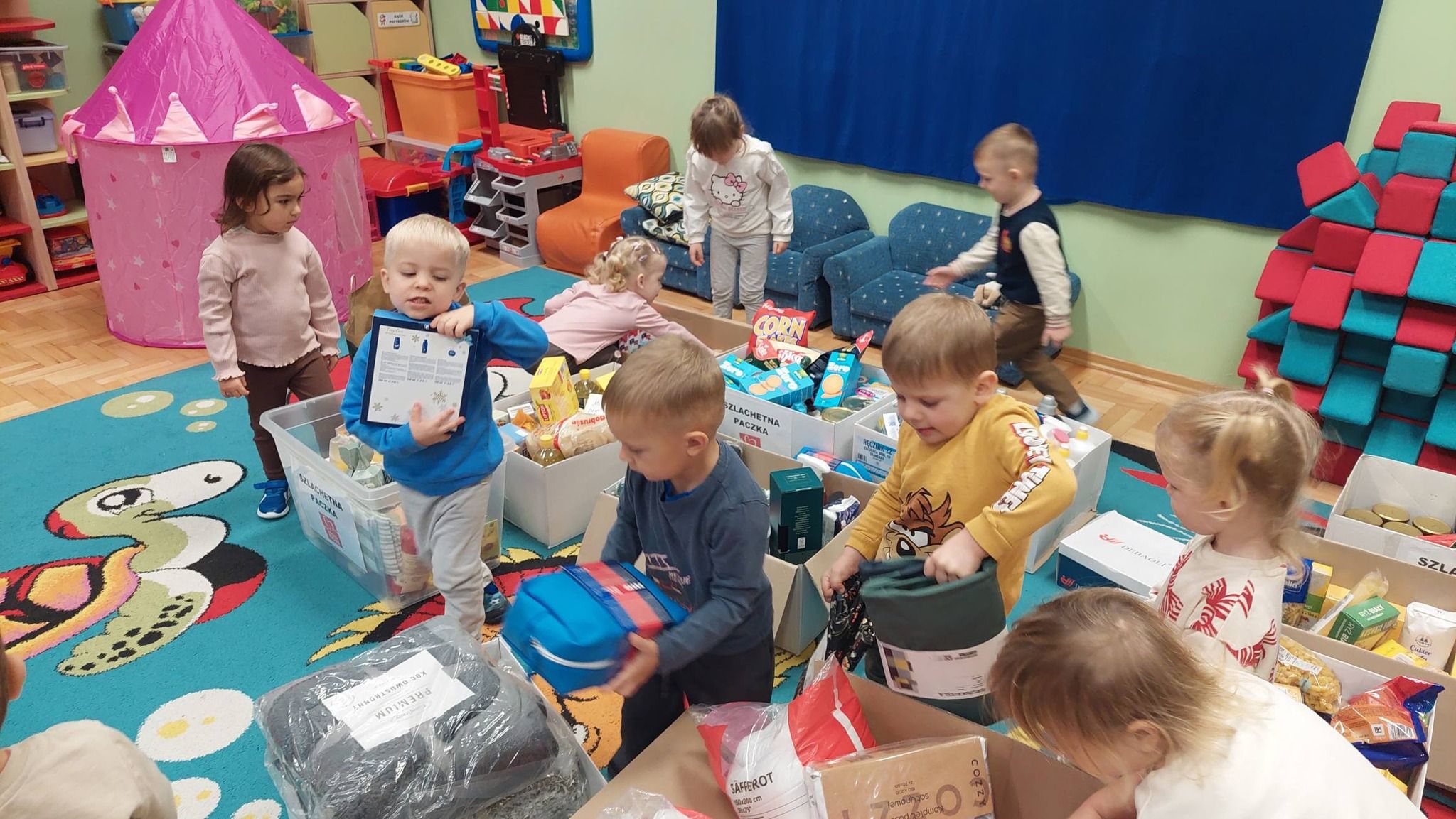 Serdecznie dziękujemy wszystkim darczyńcom za pomoc i okazane serce. Poniżej przedstawiamy zdjęcia z pakowania Szlachetnej Paczki. Możemy być dumni z Rodziców naszych przedszkolaków i pracowników przedszkola za tak liczne dary, które spowodują, że nadchodzące Święta Bożego Narodzenia upłyną wybranej rodzinie w dostatku, spokoju i radości